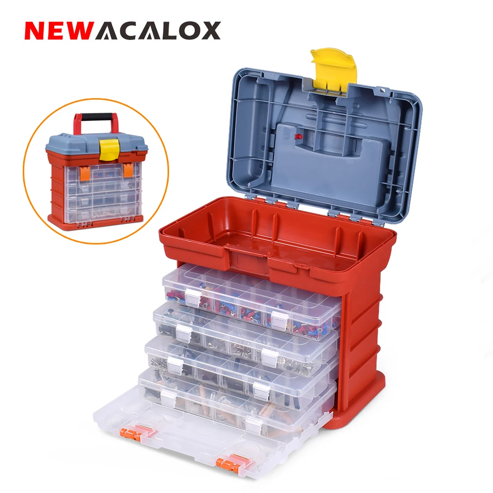 - Newacalox portátil caixa de armazenamento de ferragem 4-layer peças caixa de ferramentas de plástico ao ar livre caixa de ferramentas para reparação acessórios de pesca caso de ferramentas