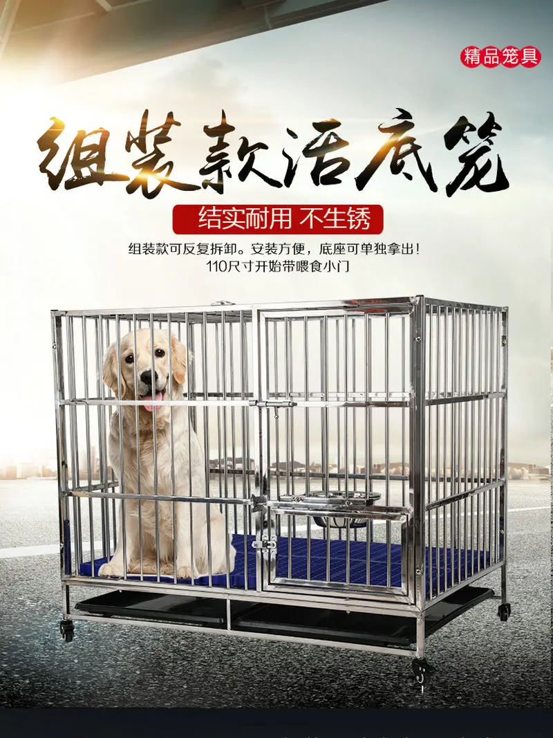 1. Hq dobrando ou montando grandes gaiolas de aço inoxidável do animal de estimação do cão canil portadores casas caixa com arco sub placa porta deslizante
