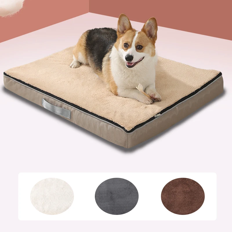- Espuma de memória cama do cão animal estimação colchão removível lavável à prova dfuzzy água cobertura difusa não deslizamento inferior caixa esteira para pequenos cães médios