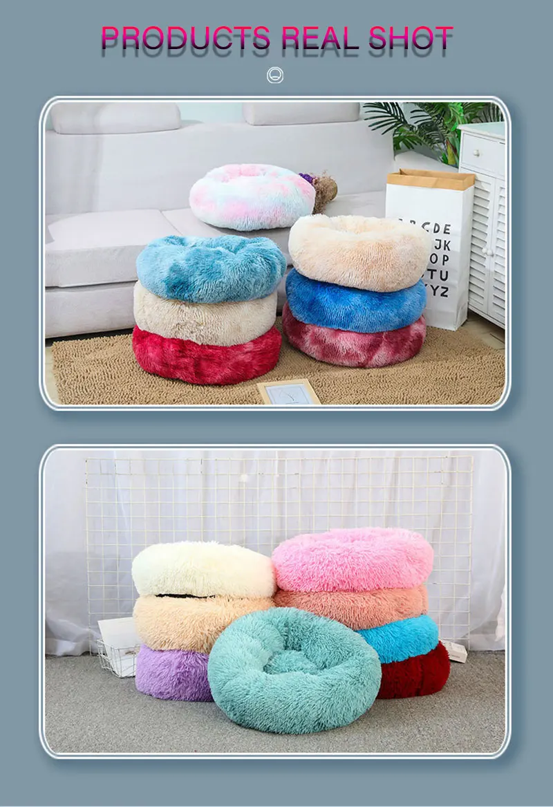 1. Cão de estimação cama super macio donut pelúcia colchão do cão grande cão quente redondo canil lavável almofada casa tapete dormir sofá cama