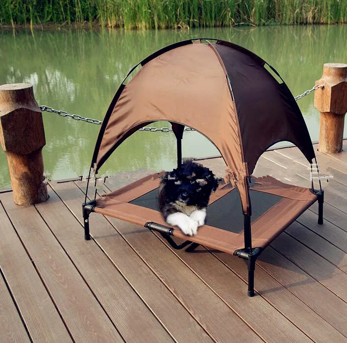 - 2 em 1 cama de cão elevada e barraca de resfriamento-viagem ao ar livre portátil removível grandes camas levantadas para animais de estimação com dossel destacável