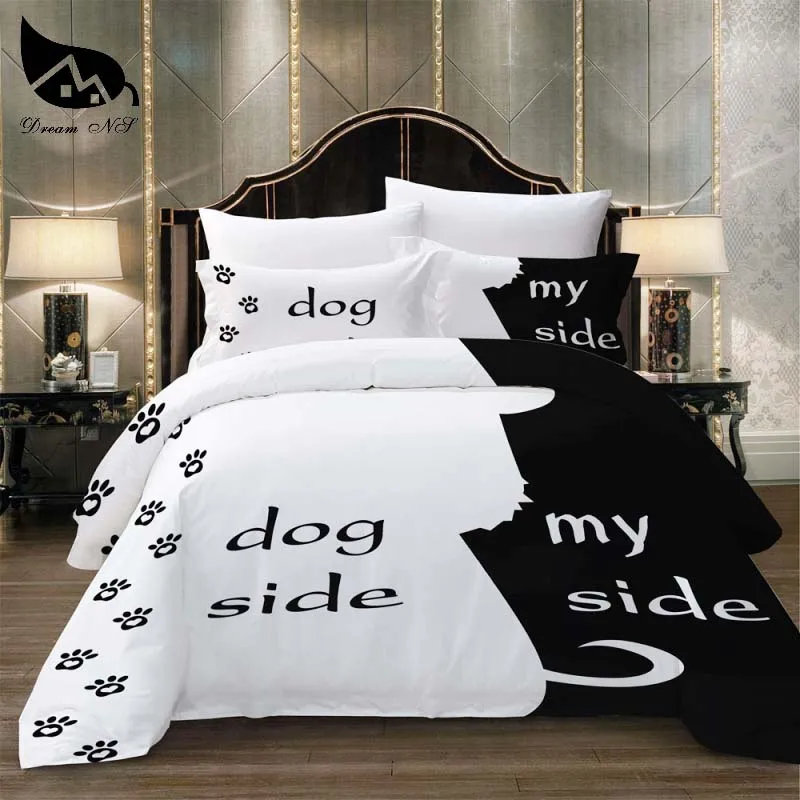 - Dream ns-conjunto de cama branco e preto, roupas de cama para casal, gato/cachorro/ele e seu casal, personalizado, casa, tecido, conjunto de cama