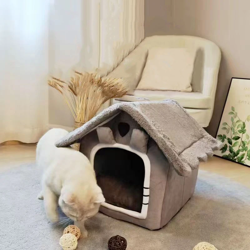 16. Casa de gato totalmente fechado inverno quente casa de cachorro cama de gato pequeno cão removível e lavável tipo casa pet maca gato suprimentos 2022